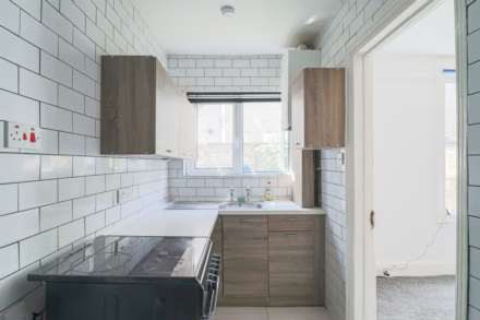 Side aspect uPVC double glazed window. Smooth ceiling with central light. Fully tiled. Fitted with a range of eye and base level units with laminate work top surface over. Inset stainless steel sink. Space for oven and fridge freezer. Space and plumbing for washing machine. Wall mounted combi boiler. Arch to